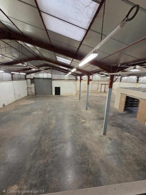 Batiment type industriel d’environ 700 m2 , composé d’un espace entrepot et d’un espace bureau.
