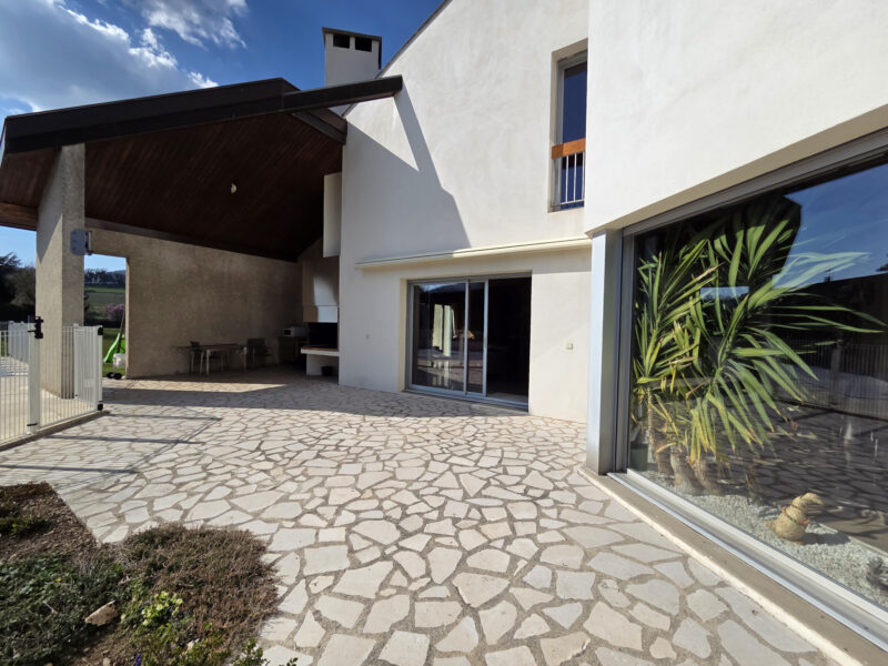 Coexclusivité. Sur la commune de Chirens, à 10 minutes de Voiron, dans un evironnement très calme, maison d’architecte de 205 m2 avec appartement indépendant de 40 m2 et parcelle de terrain de 2155 m2.