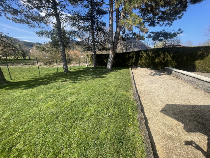 Terrain arboré très agréable et ensolleillé de 2155 m2 avec piscine, terrasse, terrain de pétanque.
