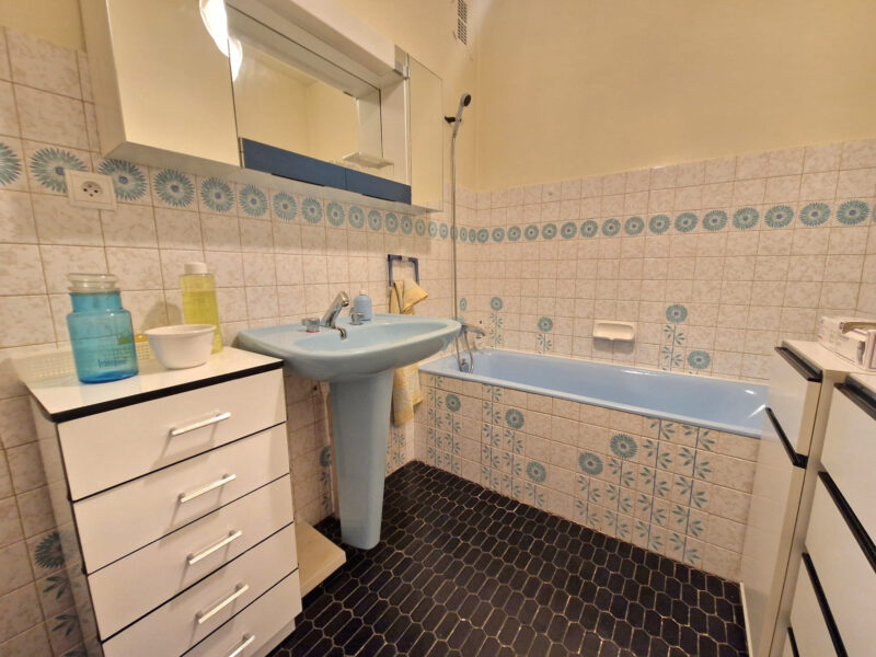 Cet appartement de 42 m2 comprend une entrée, une cuisine équipée avec rangement donnant sur un premier balcon de 2.5 m2, séjour/chambre de 17 m2 donnant sur un second balcon avec vue dégagée de 3.5 m2, un WC séparé, une salle de bain avec baignoire.