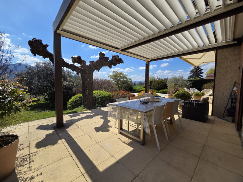 Terrain de 949 m2 clos et arboré avec jardin, terrasse avec pergola bioclimatique et vue superbe, piscine.