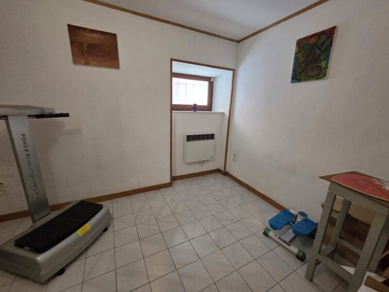 Au niveau inférieur vous trouverez un bureau de 5.4 m2, 1 pièce de 8 m2 pouvant servir de chambre d’amis et 1 chambre.