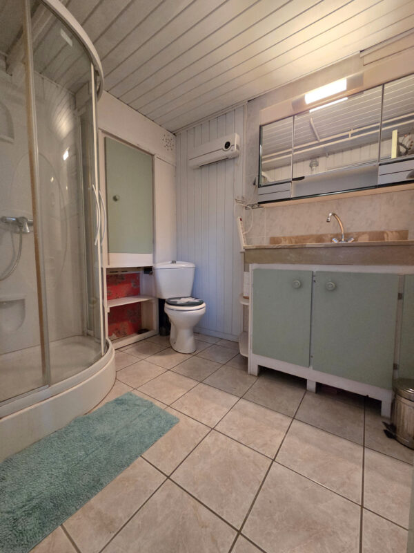 Au rez-de-chaussée vous trouverez une kitchenette donnant sur salon, 1 chambre, salle de douche avec WC, véranda. Environ 35 m2 habitable + véranda de 16 m2.