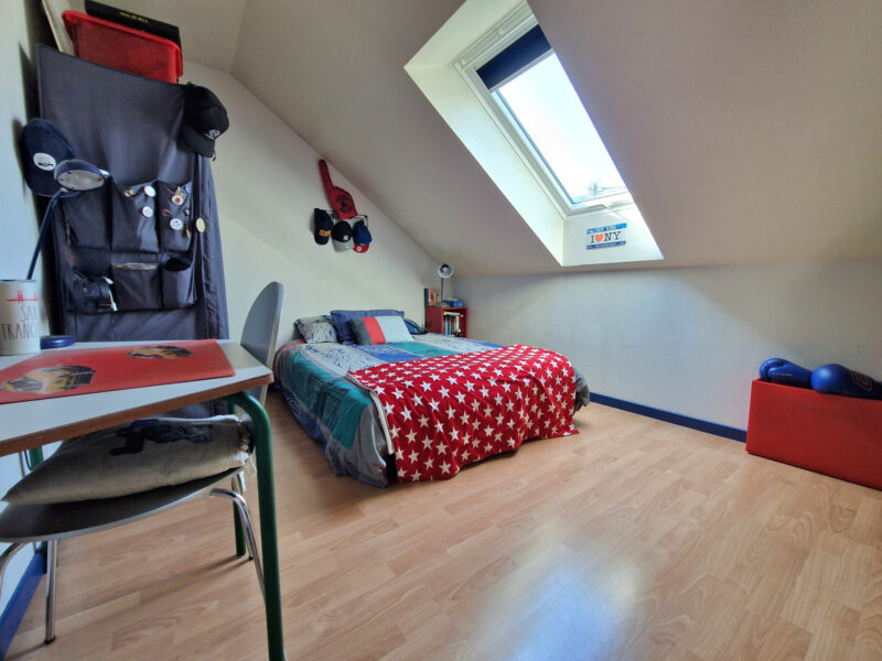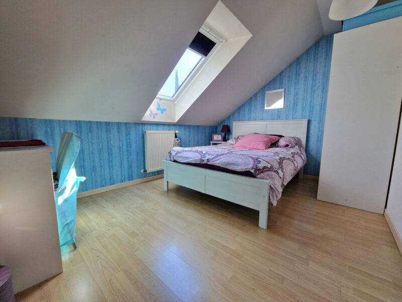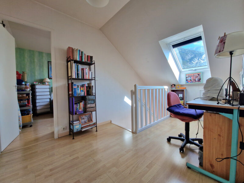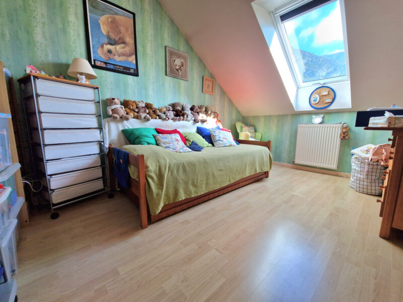 A l’étage vous découvrirez 3 chambres, 1 salle de douche avec WC et 1 espace mezzanine pouvant servir de coin bureau.