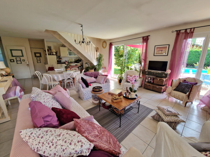 Terrain clos et arboré de 526 m2 avec piscine, terrasse, parking pour vos véhicules. Exposition SUD.