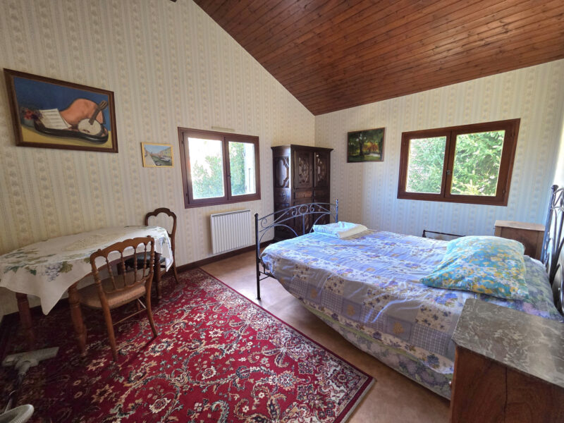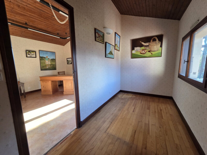 A l’étage nous trouvons 3 autres chambres, un espace bureau, une mezzanine, rangements, salle de bain et WC séparé.