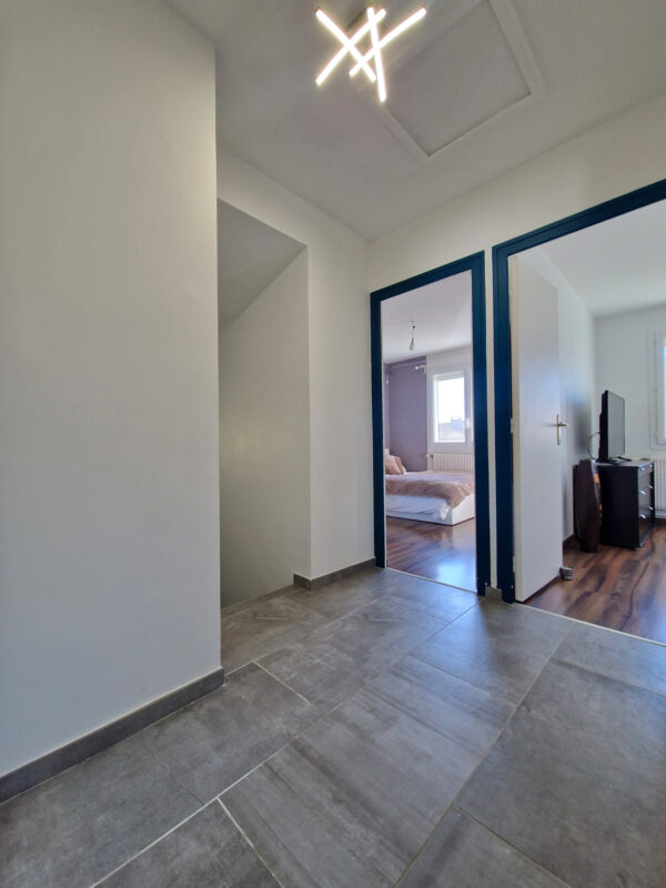L’étage vous offre 4 chambres dont 3 avec placard, 1 salle d’eau rénovée en 2022 avec douche italienne et WC.