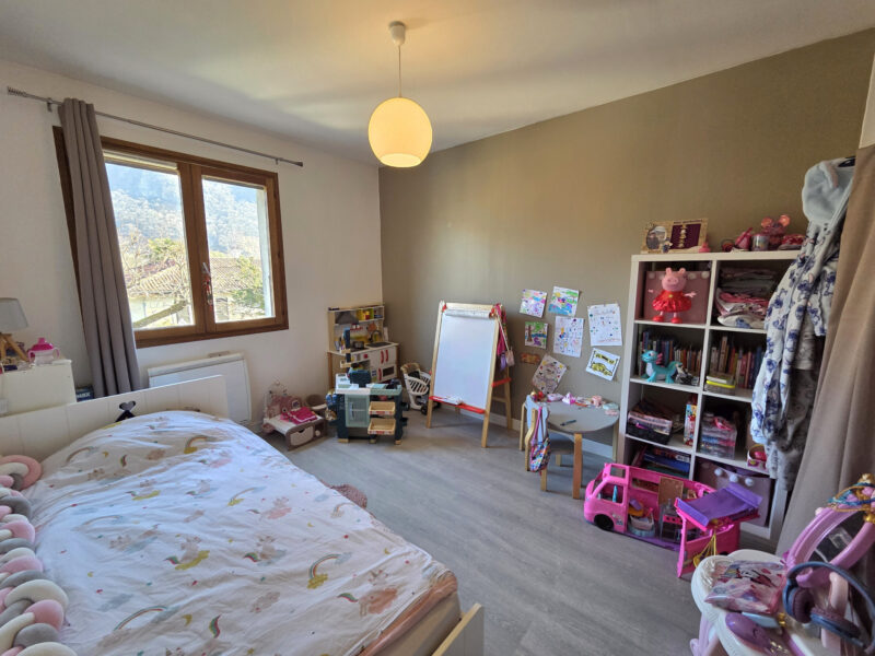 A l’étage vous trouverez 3 chambres, un balcon, un grand espace de rangement, une salle d’eau rénovée avec douche à l’italienne et WC.