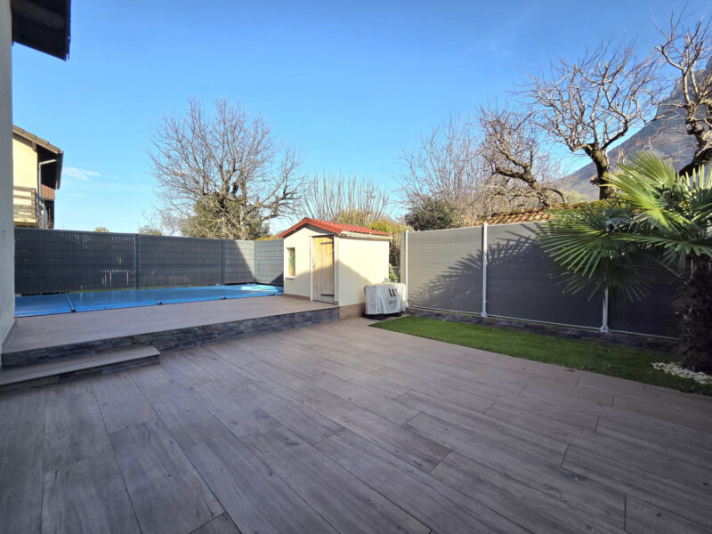Jouissance privative d’un terrain clos de 319 m2 avec parking, jardin, terrasses, cuisine d’été et piscine chauffée de 7*3.30 m. Cette piscine ayant été rénovée complètement en 2023.