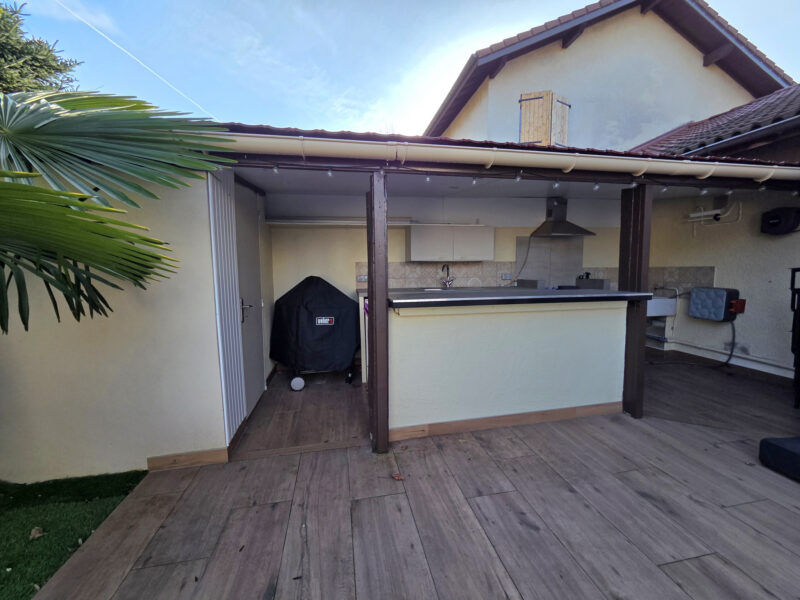 Exclusivité, dans une impasse, maison mitoyenne par le garage, sans gêne de 4P + cuisine de 98 m2 avec piscine.
